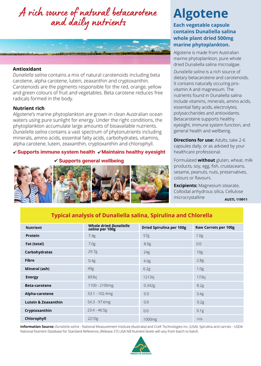 ALGOTENE Dunaliella Salina Red Marine Phyto Plankton 180 Caps