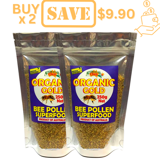 BEE POLLEN 100% Australian Cert. Organic Gold 250g Granules